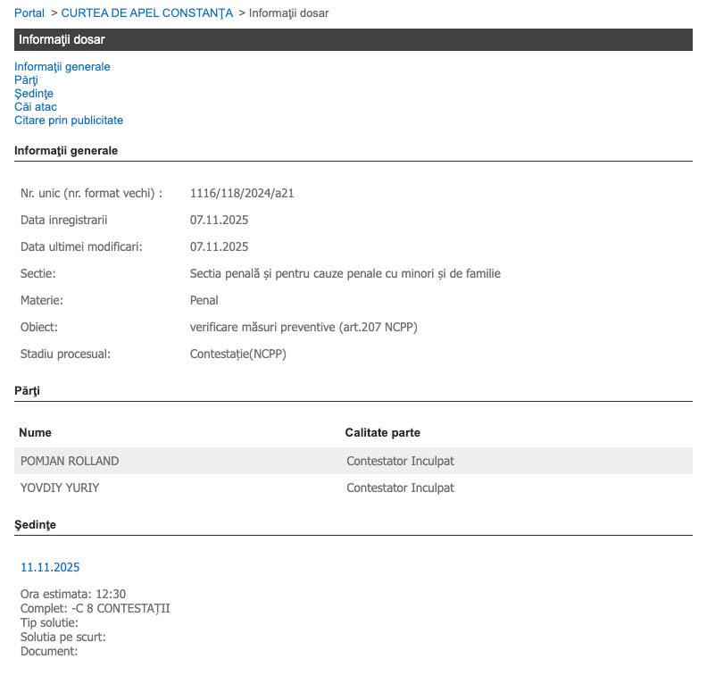 Conform Portalului instanțelor de judecată, magistrații vor analiza contestațiile marți, 11 noiembrie 2025.