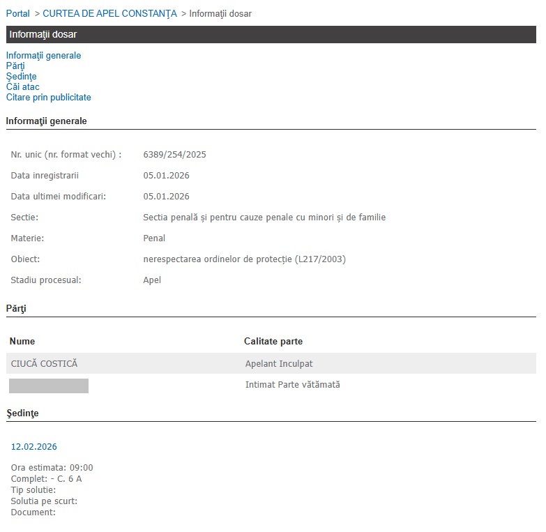 Decizia, nefiind definitivă, a fost atacată de către inculpat la Curtea de Apel Constanța. Potrivit Portalului Instanțelor de Judecată, instanța superioară a stabilit ca pe data de 12.02.2026 să examineze contestația.