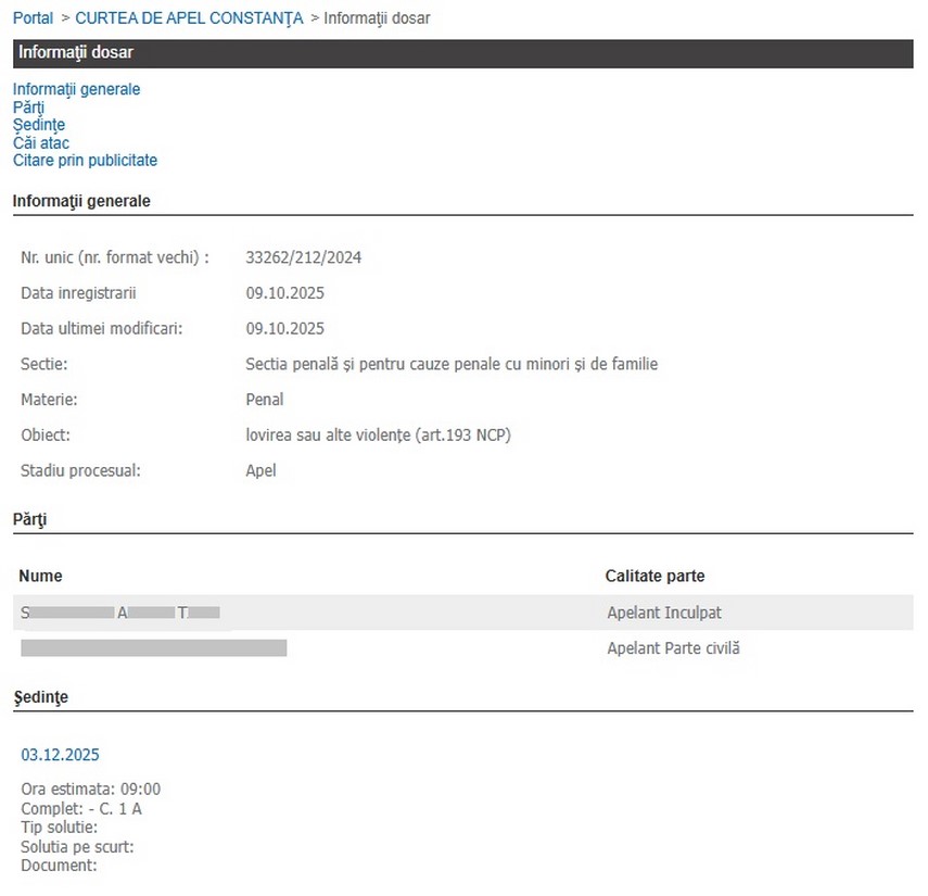 Pedeapsa a fost contestată atât de către inculpat, cât și de partea vătămată, iar astfel cauza va fi soluționată la Curtea de Apel Constanța, instanță care a stabilit termenul de judecată la începutul lunii decembrie, anul curent.