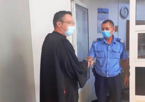 Acesta s-a deplasat la instanță echipat regulamentar cu mănuși, dar și cu o mască ce pare mai degrabă a fi o mască de gaze decât una simplă, de protecție. Din imaginea alăturată pare să se desprindă concluzia că distanța socială recomandată a fost respectată, de asemenea.