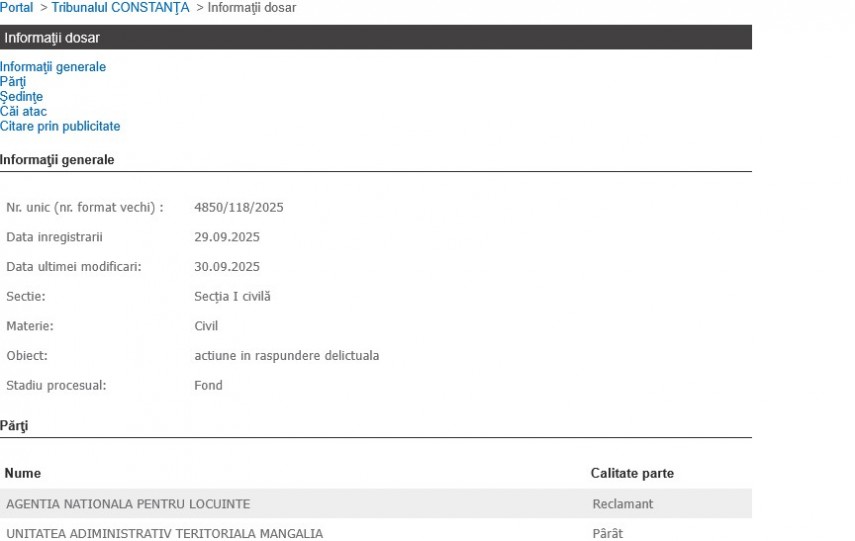 Cauza a fost introdusă pe rolul Tribunalului Constanța la data de 29 septembrie 2025.