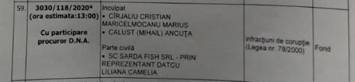 Alături de edil este cercetată și Ancuța Calust, secretar al comunei Agigea. Aceasta este bănuită de complicitatea la abuz în serviciu. În dosar, SC Sarda Fish SRL - prin reprezentant Datcu Liliana Camelia are calitatea de parte civilă.