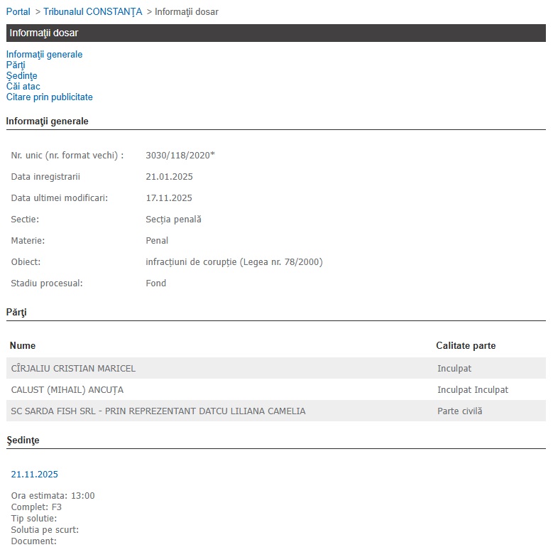 Potrivit portalului instanțelor de judecată, ședința este programată să înceapă în jurul orei 13:00, cauza aflându-se în atenția completului de judecată F3, care, potrivit surselor noastre este reprezentat de judecător Mihaela Voichița Nițeanu.