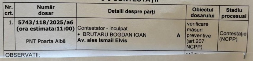 Brutaru Bogdan Ioan a contestat decizia, iar potrivit datelor oficiale, acesta a fost chemat în fața magistraților în cursul zilei de marți, 10 martie, anul curent.