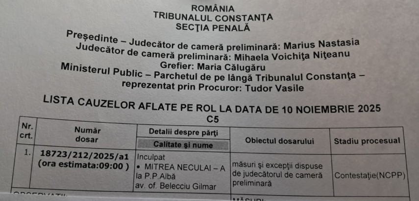 O decizie importantă a fost anunțată la Tribunalul Constanța, luni, 10.11.2025, în noul dosar în care Mitrea Neculai, poreclit „Șacalul”, acuzat într-un alt dosar de comiterea dublei crime care a îngrozit județul Constanța, a fost trimis în judecată pentru portul sau folosirea fără drept de obiecte periculoase.
