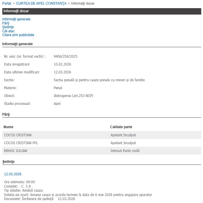 Decizia a fost contestată de inculpat, iar astfel cauza a fost trimisă spre soluționare la Curtea de Apel Constanța, instanță care a amânat cauza până în mai 2026.