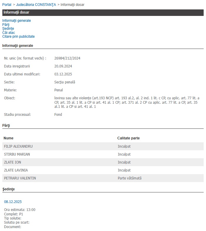 Potrivit Portalului Instanțelor de Judecată, toate părțile din dosar au fost citate în instanță luni, 08 decembrie 2025.