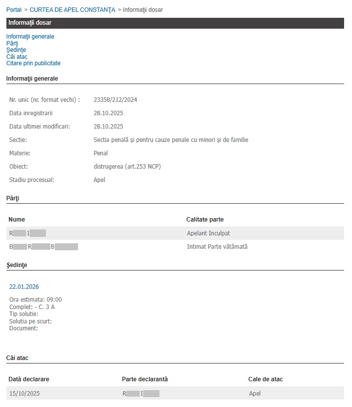 Soluția a fost atacată cu apel de către inculpat la instanța superioară, care a stabilit termen de judecată aproape de finele lunii ianuarie 2026. Oricare va fi decizia, va rămâne definitivă!