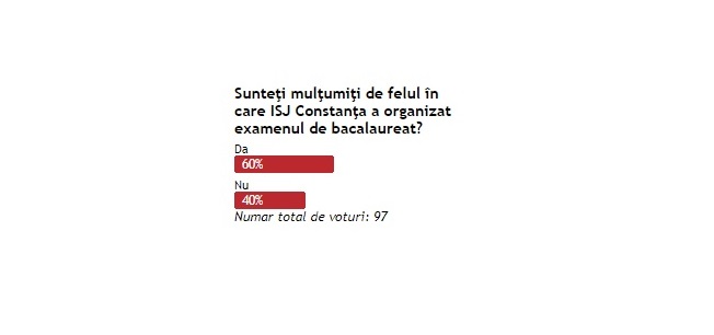 Sondaj de opinie Sunteţi mulţumiţi de felul în care ISJ Constanţa a organizat examenul de bacalaureat?