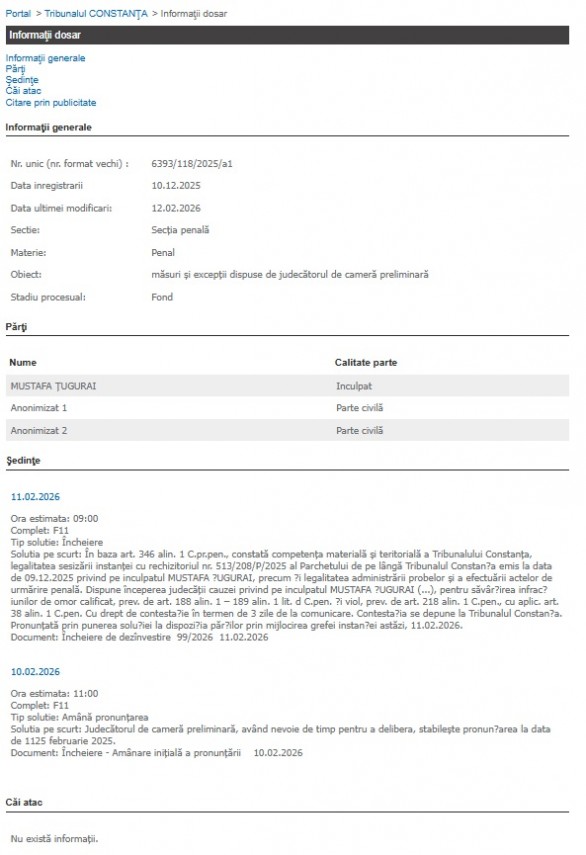 În cauză, este vorba despre inculpatul Mustafa Țugurai, deferit justiției într-un dosar de omor calificat. Scenele de groază ar fi avut loc în noaptea de 14/15.11.2025, iar potrivit procurorilor, inculpatul M.Ț. a sugrumat-o pe victimă, cauzându-i moartea ca urmare a asfixiei mecanice, acte de violență care au fost exercitate pentru a-și înlesni întreținerea concomitentă, prin constrângere, a unui raport sexual precum și a unui act sexual anal cu victima.