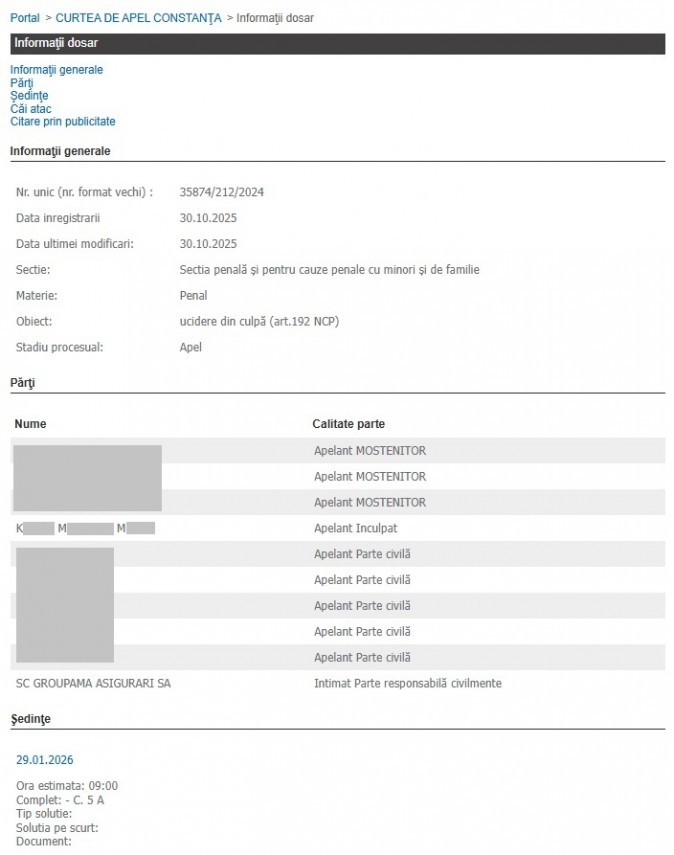 Hotărârea a fost contestată de către toate părțile implicate în dosar, cu excepția părții responsabile civilmente, fapt pentru care Curtea de Apel Constanța va lua decizia finală, în cauză.