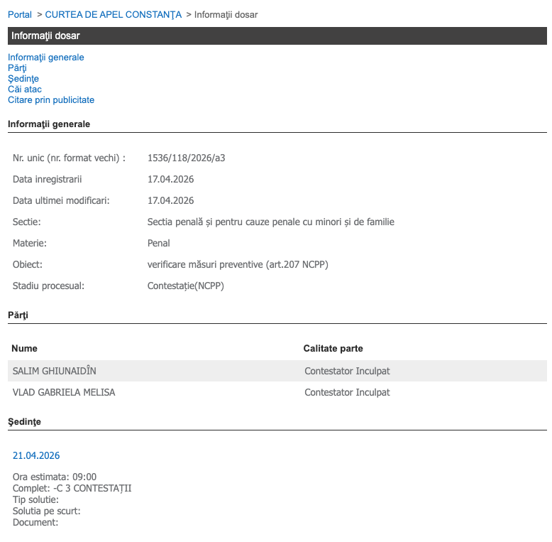 Inculpații, nemulțumiți de decizia Tribunalului Constanța, au depus contestație, iar astfel Curtea de Apel Constanța va stabili dacă va dispune sau nu alte măsuri preventive. Astfel, potrivit Portalului Instanțelor de Judecată, magistrații instanței superioare vor analiza contestațiile marți, 21.04.2026.