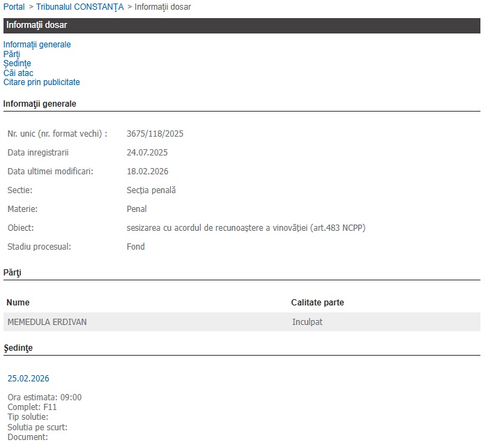 Potrivit Portalului Instanțelor de Judecată, la termenul de la finele lunii ianuarie, anul curent, Tribunalul Constanța ar fi amânat pronunțarea până astăzi, 25.02.2026. Oricare va fi decizia, va putea fi contestată.