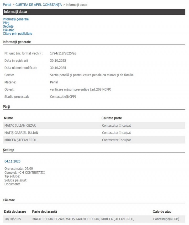 În schimb, la o zi distanță, cei trei inculpați au contestat măsurile preventive. Drept urmare, decizia finală va reveni Curții de Apel Constanța, instanță care a fixat termenul de judecată la începutul lunii noiembrie, anul curent.