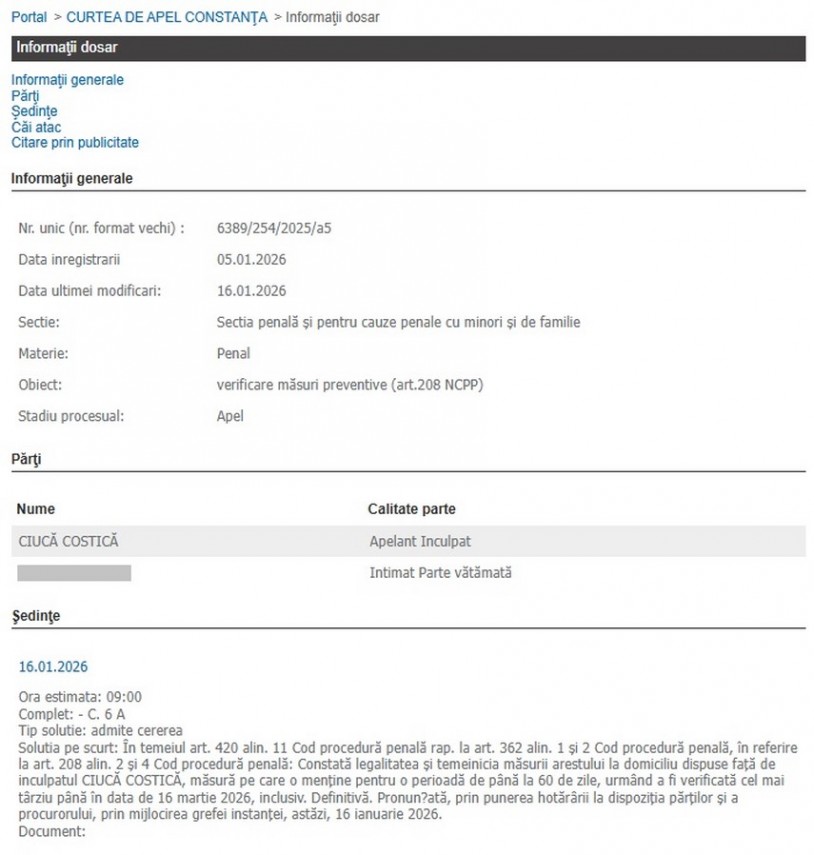 Decizia instanței de fond a fost atacată de către inculpat. Potrivit Portalului Instanțelor de Judecată, instanța superioară a stabilit ca pe data de 12.02.2026 să examineze contestația, însă, între timp, magistrații au hotărât ca inculpatul să rămână în arest la domiciliu.
