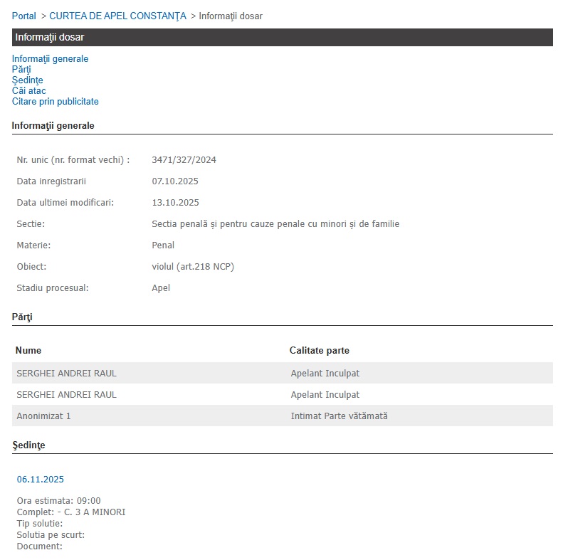 Inculpatul a contestat decizia instanței de fond, fapt pentru care cazul a intrat în atenția Curții de Apel Constanța, instanță abilitată să soluționeze cauza definitiv. Potrivit Portalului Instanțelor de Judecată, magistrații ar putea încheia dosarul definitiv la începutul lunii noiembrie.