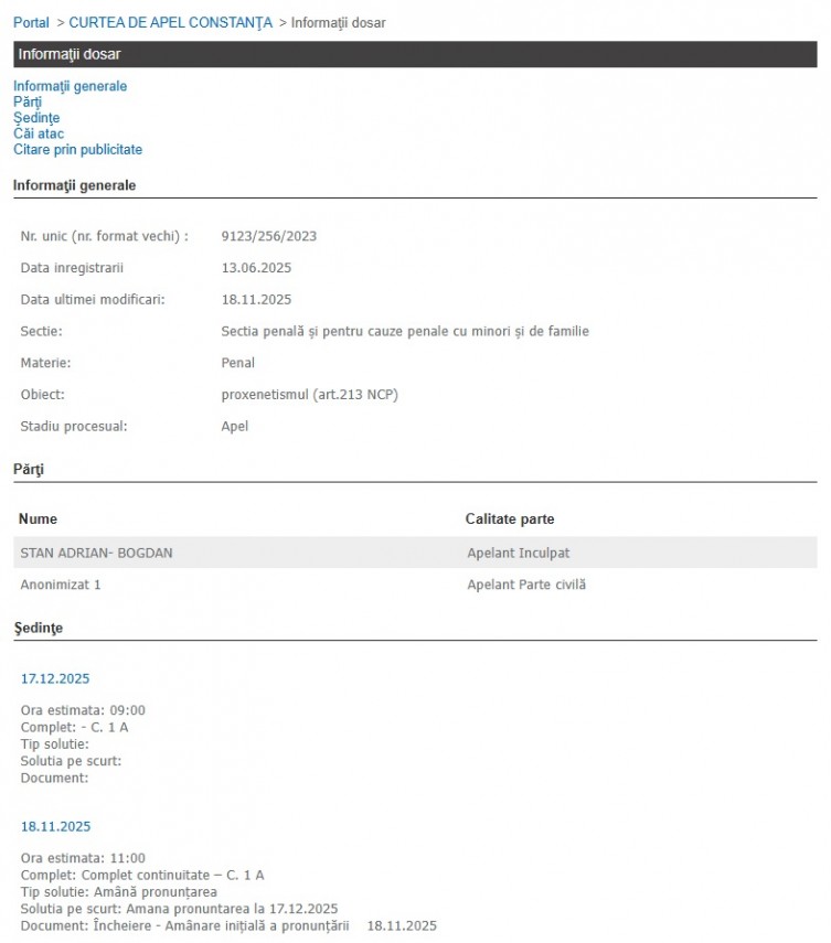 Soluția a fost contestată de inculpat, iar astfel cauza a ajuns în atenția Curții de Apel Constanța, instanță care a stabilit ca la data de 02.10.2025 să anunțe o decizie în cauză. Judecata a fost amânată până marți, 18 noiembrie, anul în curs, pentru ca inculpatul să-și găsească un avocat care să-l reprezinte în instanță.