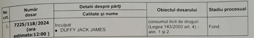 Procurorii spun despre acesta că la data de 28.04.2023, în timp ce se afla la Festivalul de Muzică „SUNWAVES” din Mamaia, a deținut pentru consum propriu, fără drept, o punguță din material plastic transparent, autosigilantă, ce conținea 0,33 grame de cocaină, un comprimat oval de culoare portocalie, inscripționat cu logo-ul „Chocomel”, care conținea ca substanță activă 3,4-methylenedioxymethaphetamine (MDMA), un fragment de folie din material plastic de culoare albă ce conținea 0,63 grame de ketamină și o linguriță metalică aurie, tip pandantiv cu lănțișor metalic auriu, pe care s-au pus în evidență cocaină și ketamină.