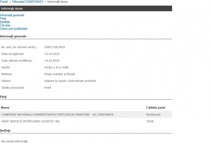 Compania Națională Administrația Porturilor Maritime câștigă un proces de peste 3 milioane de lei împotriva Grup Servicii Petroliere Logistic SRL