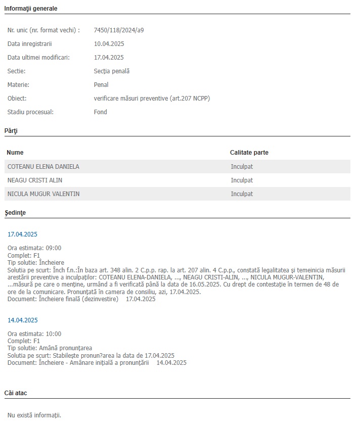 Măsura a fost luată ieri, 17.04.2025, iar potrivit portalului instanțelor de judecată, este valabilă pentru 30 de zile!