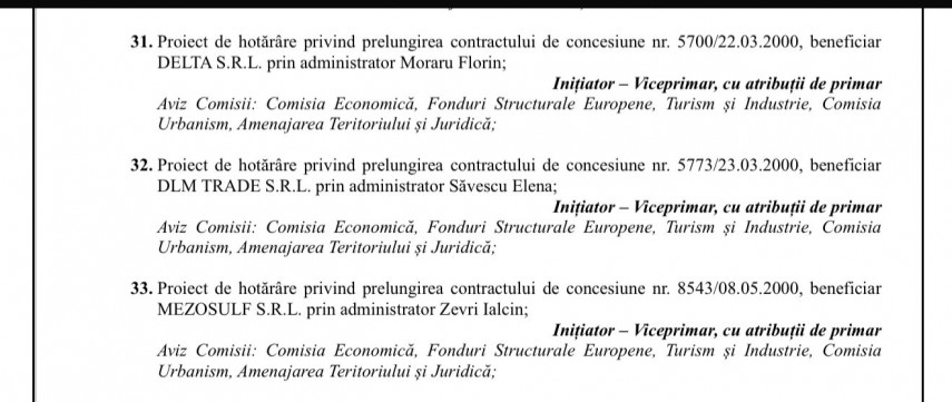 31. Proiect de hotărâre privind prelungirea contractului de concesiune nr. 5700/22.03.2000, beneficiar DELTA S.R.L. prin administrator Moraru Florin;Inițiator – Viceprimar, cu atribuții de primar