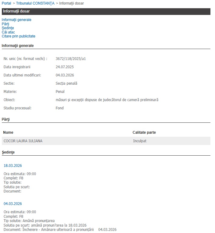 În cursul acestei zile, conform datelor publicate pe Portalul Instanțelor de Judecată, magistrații camerei preliminare din cadrul Tribunalului Constanța au anunțat o nouă amânare de pronunțare cu privire la soarta dosarului cu indicativul 3672/118/2025, care are ca obiect infracţiuni de corupţie.