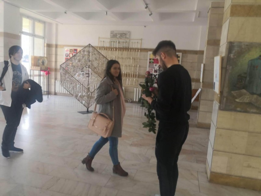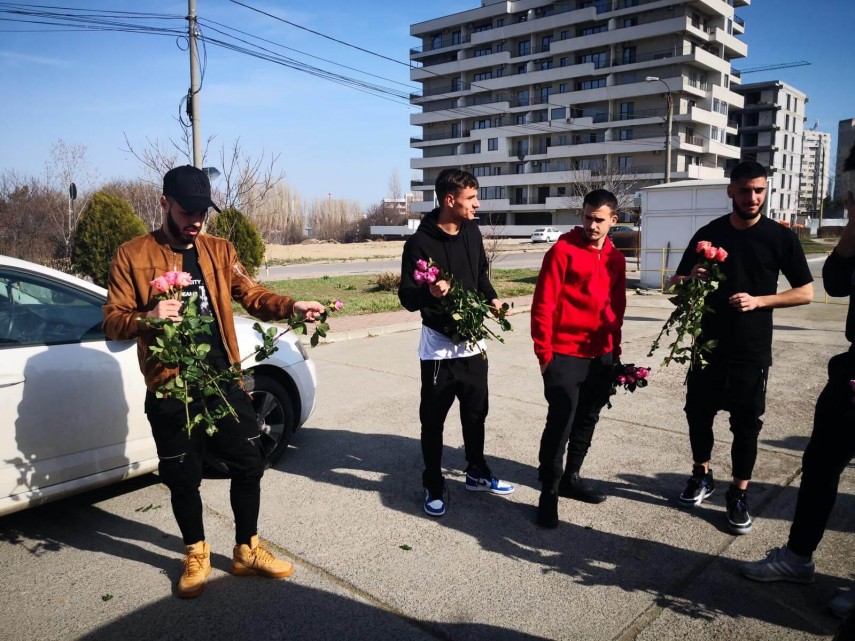 Fotbaliștii de la FC Viitorul au oferit flori doamnelor și domnișoarelor de la Universitatea Ovidius din Constanța (galerie foto+video)