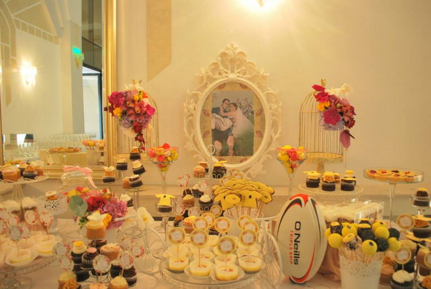 „Numărul 8 pe teren, numărul 1 în inima mea“: Tricouri şi mingi de rugby la candy bar-ul de la nunta lui