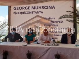 Pe lângă George Muhscină, la conferinţa de presă este prezent şi consilierul judeţean Marius Enescu.