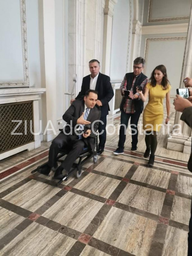 Cristian Lungu, de la PMP, a venit cu ambulanţa la Parlament, pentru a putea vota. El s-a externat în această dimineaţă pentru a fi prezent la dezbaterea moţiunii. În jurul orei 12:00 a ajuns la Parlament.