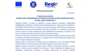 În altă ordine de idei, la şcoala din comună, care a intrat în reabilitare de câteva luni, lucrările sunt mult mai avansate faţă de graficul stabilit şi se vor finaliza mai devreme de începutul anului şcolar 2012 - 2013, cum se prognozase. „Lucrările merg foarte bine, s-a finalizat lucrarea la instalaţia electrică şi se lucrează la pregătirea pereţilor în vederea efectuării renovării propriu-zise. Tâmplăria a mai rămas de schimbat, însă constructorul a spus că o va face în primăvară. Se va termina mult mai repede decât s-a stabilit", a mai spus primarul. Clădirea şcolii nu mai fusese reabilitată din 1970.