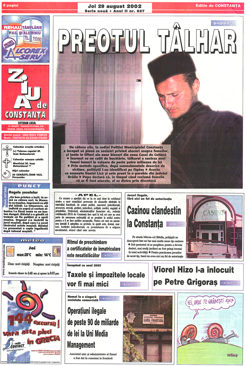 Din arhiva cotidianului ZIUA de Constanţa, vă prezentam astăzi trei materiale din ediţia nr. 537, din data de 29 august 2002.