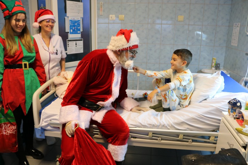 Astfel, Moș Crăciun a ajuns astăzi la Spitalul Clinic Județean de Urgență „Sf. Apostol Andrei” Constanța și la Spitalul de Boli Infecțioase cu o mulțime de daruri pentru copiii internați. Copii se-au bucurat de prezenţa iubitoare a Moşului Crăciun, a Crăciuniței, a spiriduşilor şi a elfilor, a oamenilor de zăpadă.