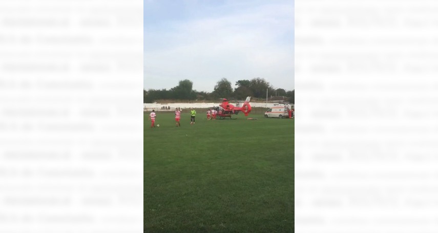 Elicopterul SMURD a aterizat aseară pe gazonul stadionului din Băneasa.Pe stadion era programat la acea oră meciul de fotbal Gloria Băneasa - Portul Constanţa, din etapa a doua a Ligii a 4-a constănţene, dar nu se juca efectiv, ci era pauza dintre cele două reprize.