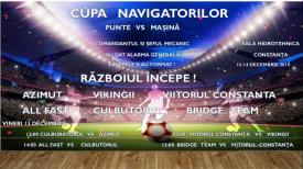 Participă echipele Azimut, Vikingii, Viitorul Constanţa, All Fast, Culbutorul şi Bridge Team. „Punte vs. Maşină. Comandantul şi şeful mecanic au dat alarma generală! Echipele s-au format! Războiul începe!“, se arată pe pagina de Facebook a ACNR. Vineri, 13 decembrie, programul estre următorul: ora 12.00 - Culbutorul - Azimut, ora 14.00 - All Fast - Culbutorul, ora 13.00 - Viitorul - Vikingii, ora 15.00 - Bridge Team - Viitorul.