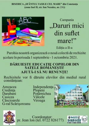 Potrivit unui comunicat al Arhiepiscopieri Tomisului, proiectul este coordonat de către pr. Jean Ion și are scopul de a ajuta doi copii cu probleme medicale.