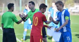 13 jucători de la Academia de Fotbal „Gheorghe Hagi“ au participat, ieri, la Buftea, la partida amicală între echipele naţionale ale României de până în 18 şi până în 17 ani.
