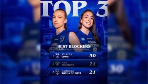 - În victoria CSM Constanța cu CSM București, Andreea Cimpu a avut un procentaj de reușită în atac de 67%, realizând 10 puncte (+7), dintre care patru blocaje.