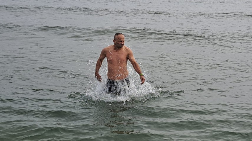 Eforie: Alergătorii veterani Vasile Apetroaie și Arun Asan au făcut baie în mare și în ianuarie 2024 (GALERIE