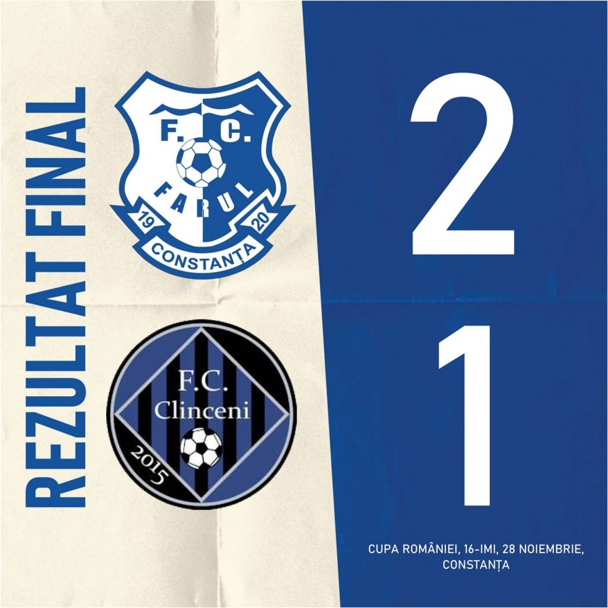- Divizionara secundă FC Farul Constanța s-a calificat în optimile de finală.