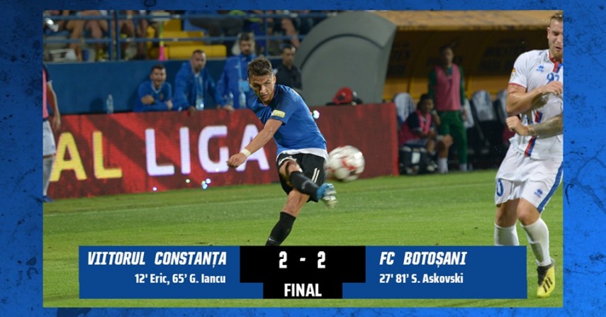 FC Viitorul și FC Botoșani au remizat, 2-2, în această seară, la Ovidiu, în etapa a cincea a Ligii 1, la capătul unui meci foarte frumos, în care ambele echipe puteau înscrie golul victoriei pe final, gazdele având și o bară.Au înscris Eric (12 - din penalty), Iancu (65), respectiv Ashkovski (27, 81).