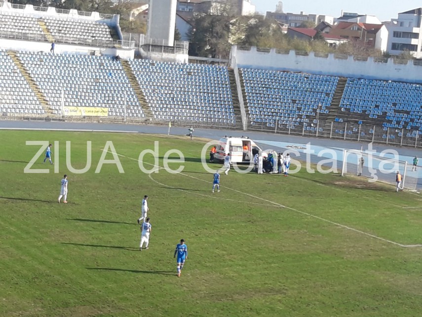 UPDATE. Imagini de la eveniment: Fotbalist de la SSC Farul Constanța, transportat cu salvarea la spital (galerie