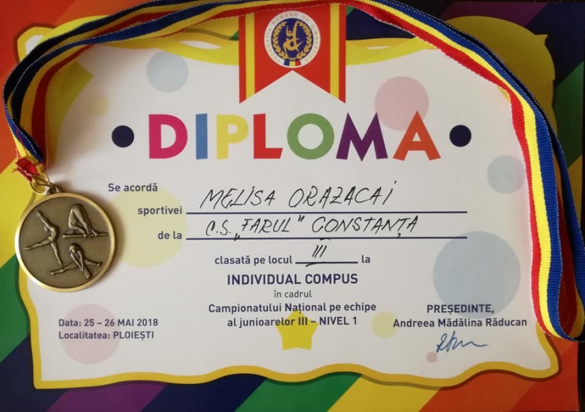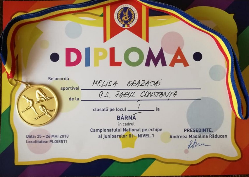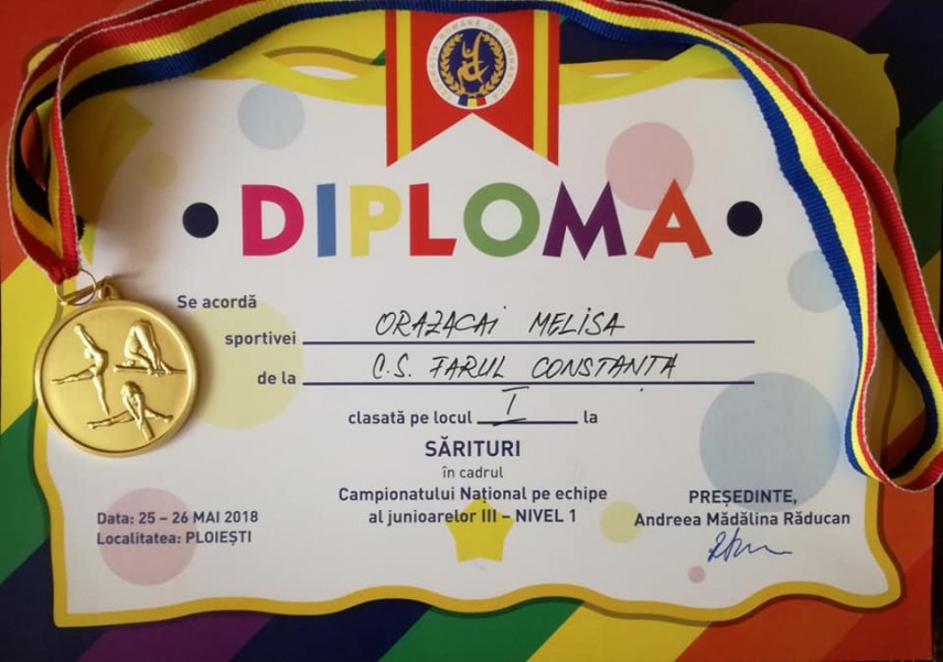 Gimnasta Melisa Orazacai, de la CS Farul, dublă campioană naţională. Aur a luat şi echipa CSS1 Constanţa