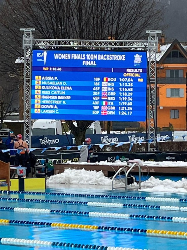 Înot în ape înghețate: FOTO. Aissia Prisecariu de la CSM Constanța doboară recordul mondial la 100 m spate