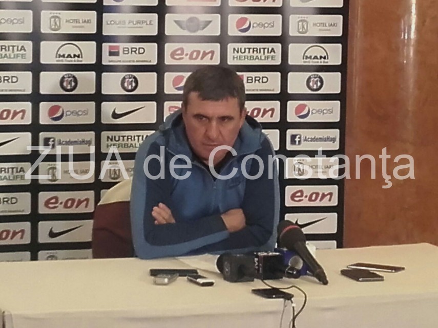 La conferinţa de presă, primii vorbesc jucătorii Romario Benzar şi George Țucudean, dupa care va veni în faţa ziariştilor Gică Hagi, managerul tehnic al FC Viitorul.