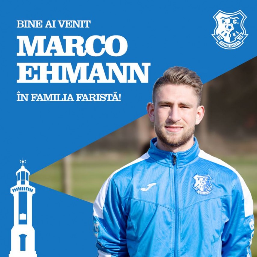 SSC Farul Constanța a anunțat astăzi un nou transfer, cel al fundașului central Marco Ehmann.Acesta are 18 ani și vine la echipa de Liga a 2-a de la Dinamo București.