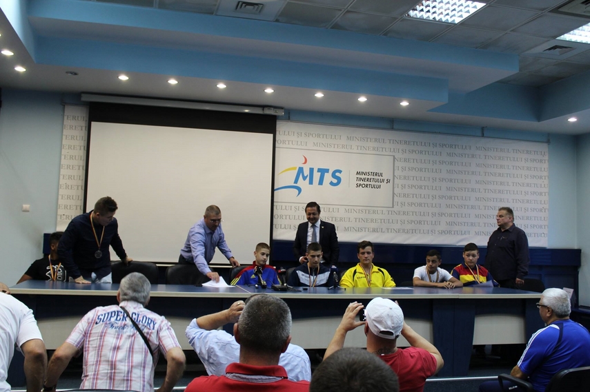 Marius Dunca, ministrul Tineretului şi Sportului, i-a felicitat la sediul ministerului pe medaliaţii României de la Campionatul European de box pentru cadeţi, care s-a disputat în România, la Rm. Vâlcea. Delegaţia tricoloră a cucerit şapte medalii (una de aur, una de argint şi cinci de bronz), cea de argint fiind obţinută, la categoria 105 kg, de sportivul din Năvodari Albert Potoceanu, care e pregătit de Ablalim Ferodin şi Marcel Jipeeanu. „Felicitări tuturor! Am încredere că astfel de rezultate bune vor continua!“, a spus ministrul.