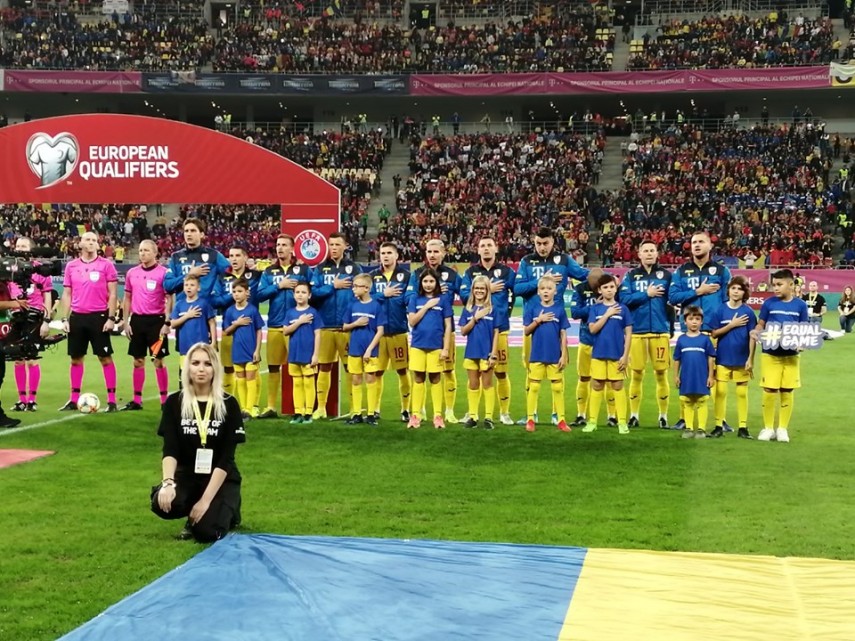 În urma unei sancțiuni dictate de UEFA, meciul s-a disputat în tribune doar cu copii sub 14 ani, cărora le-a fost permis accesul gratuit, alături de însoțitorii lor. Au fost 30.000 de copii la meci, inclusiv de la unități de învățământ și cluburi sportive din Constanța. Momentul intonării imnurilor naționale a fost unul emoționant, atunci când micii spectatori au cântat „Deșteaptă-te române!“.Sursa foto: Facebook (Echipa națională de fotbal a României)