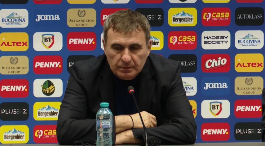 „Regele“ este prezentat în acest moment într-o conferință de presă, la care mai participă Răzvan Burleanu, președintele Federației Române de Fotbal, și Mihai Stoichiță, directorul tehnic al FRF.