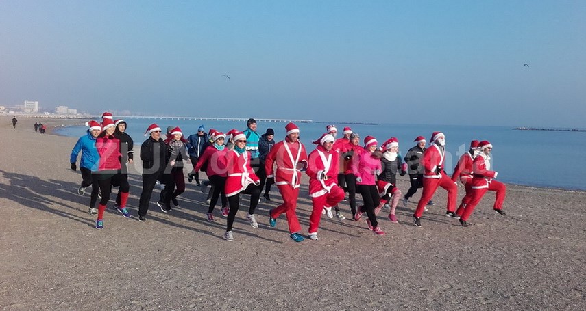 Aproximativ 50 de iubitori şi iubitoare de mişcare din Constanţa, de toate vârstele, membri ai AS Sana Sport şi nu numai, s-au strâns ieri pe plaja de la Mamaia, pentru ediţia pe 2016 a Santa Run.